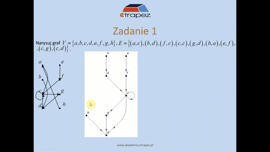 - zadanie na rysowanie wykresu grafu o zadanych wierzchołkach i krawędziach [13:34]