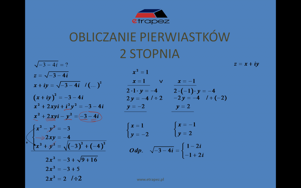- równanie zespolone – przykład 3 [10:50]
