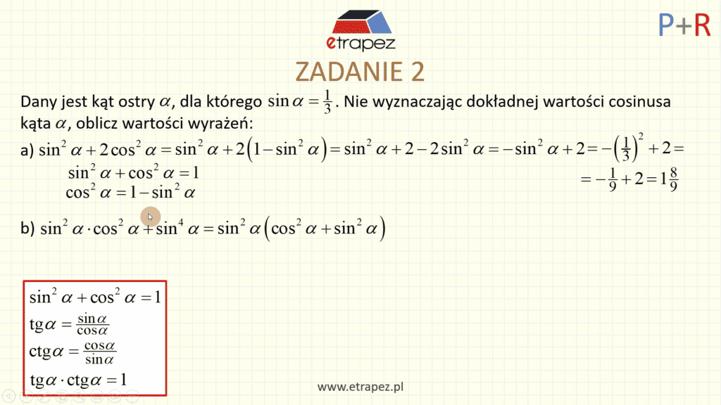 - Podstawowe tożsamości trygonometryczne (jedynka trygonometryczna, tangens) [02:26]