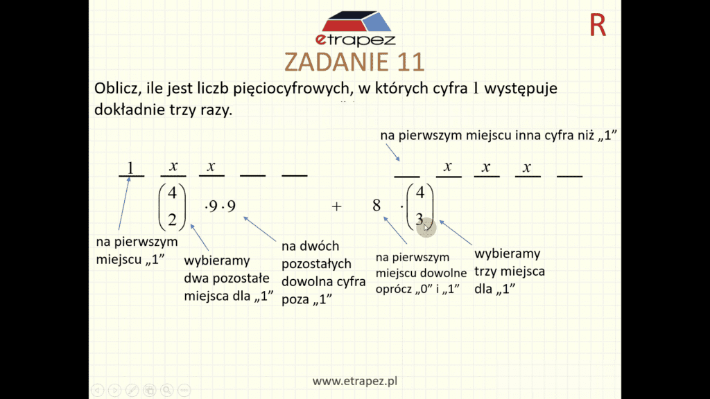 - Zadanie 11: ilość liczb pięciocyfrowych spełniających podane warunki [1:15:38]