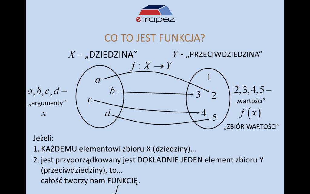 - zadanie 2: funkcja, funkcja różnowartościowa, dziedzina, zbiór wartości [37:53]