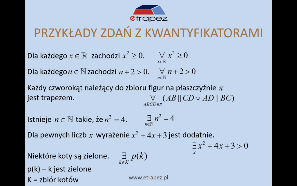 - przykłady (6) zastosowań kwantyfikatorów [13:34]